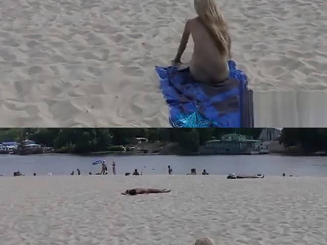 Public voyeur video is showing a hot chick lying on nudist beach