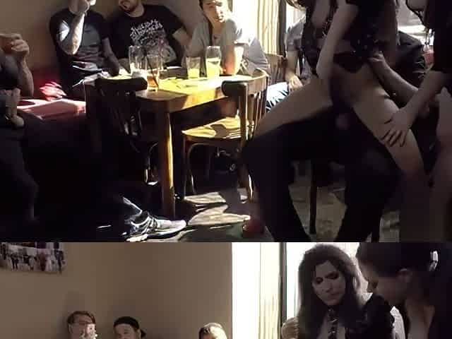 Babe gets gangbang orgasm in public