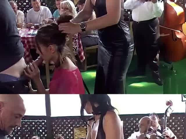 Two sluts public fucked in crowded restaurant