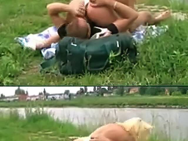 Voyeur tapes a girl playing with her bf's cock on a nudist beach