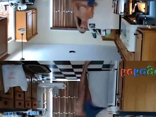 Nudist girl clean the kitchen