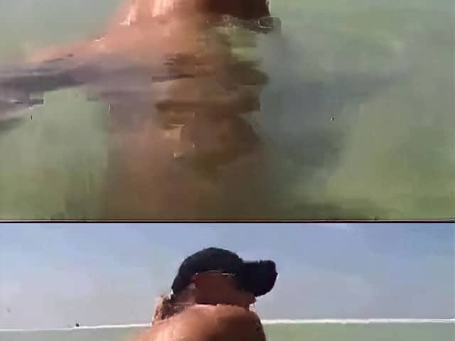 a couple masturbates on nudist beach