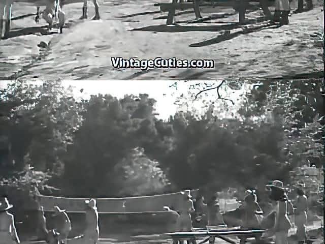 Group of Girls with Great Tits Playing Outdoors (Vintage)