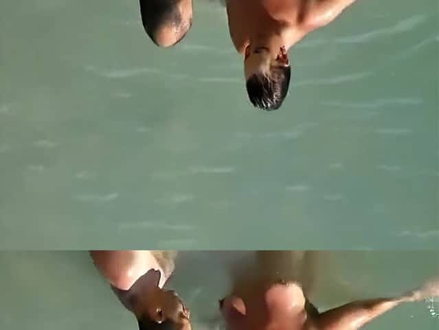 Nudist couple enjoying the fresh water
