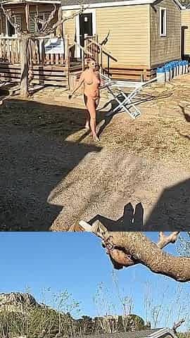 Nudist Exposed maid Exposed housewife Shower country Bikini outdoor public garden butt cunt