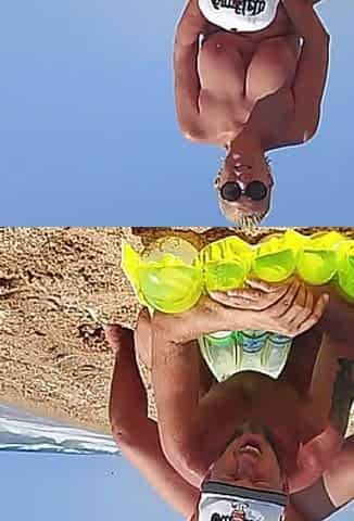 Strangers caught us masturbating on nudist beach in Maspalomas Dunes Canary with spunk flow Part two