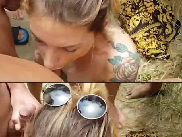 Watch as Ophelia seduces her girlfriend and her boyfriend into a wild threesome with ballgag play, blowjob, and cumshot