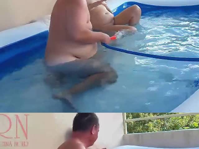 Regina Noir - Outdoor Pussy Show. Nude Couple Plays In The Outdoor Nudist Swimming Pool Cam 1