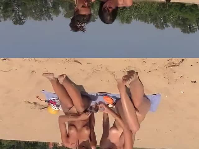 Teen nudists get naked and heat up a public beach