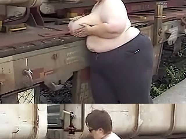 Train jerkoff and cumshot