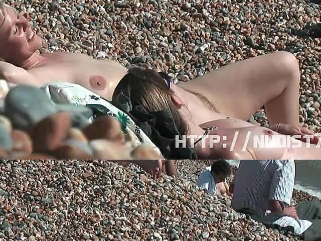 A couple of shameless nudists on the beach