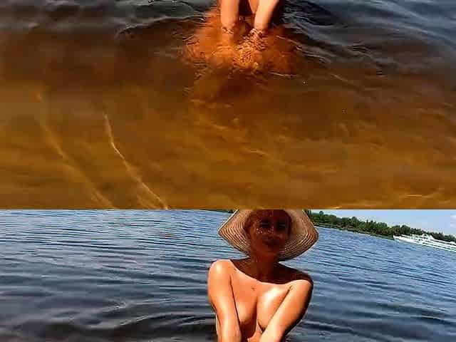 Russian Nudist on the River Shore