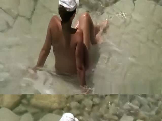 Nudist woman spied in rocky beach