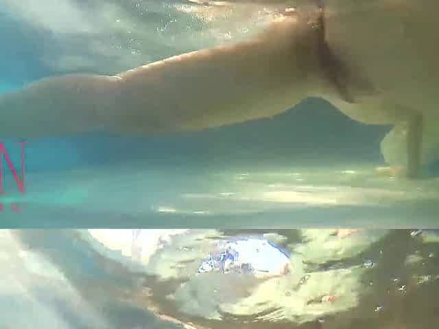Elegant and supple playgirl, swimming underwater in the outdoor swimming pool. three two