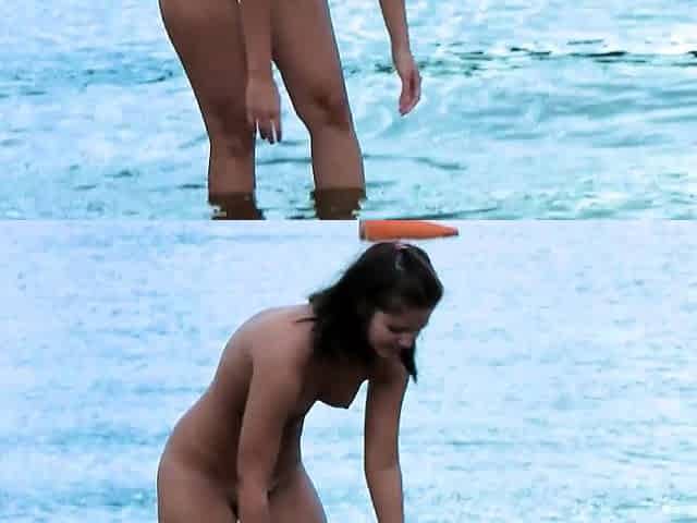 Stunning nudist teen playfully enjoys a hot day at the beach