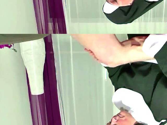 Sexy nurse and hot nun barefoot and in stockings feet show