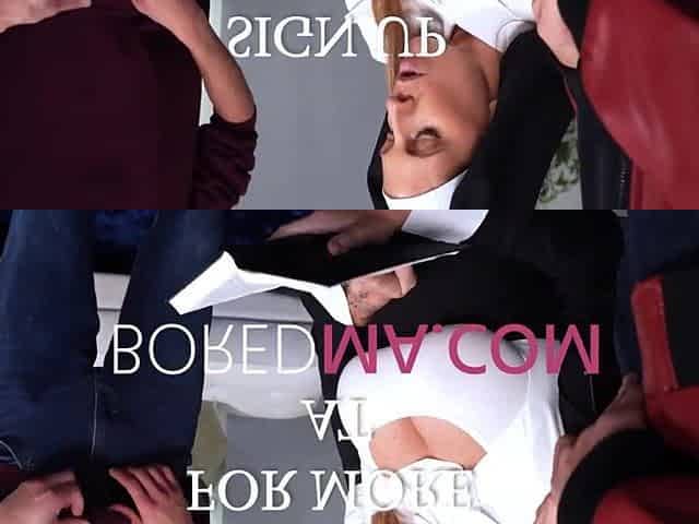 Sub maid with big boobs Annie King pleases two horny bulls