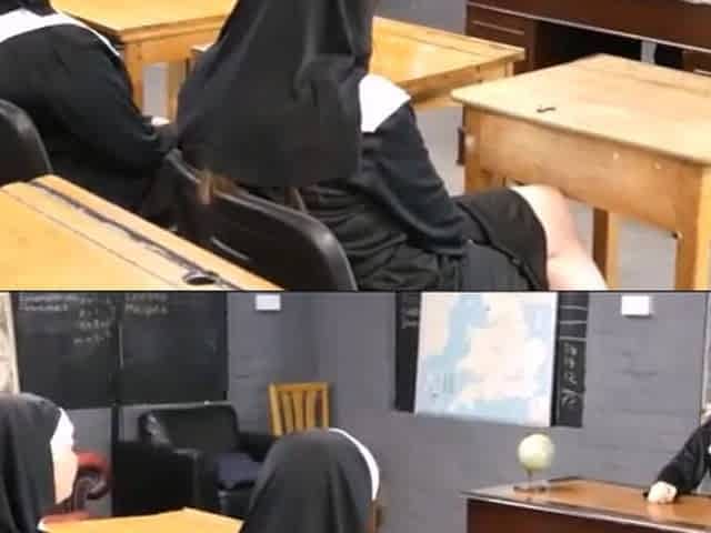 CFNM students and nun suck priests cock