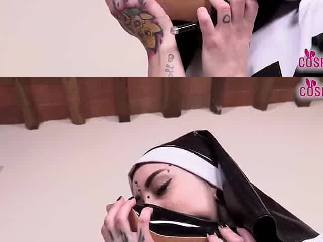 Hot Cosplayer Chiara Plays The Part Of A Horny Nun In Black Pantyhose And A Nurse In Whit - Super Sexy
