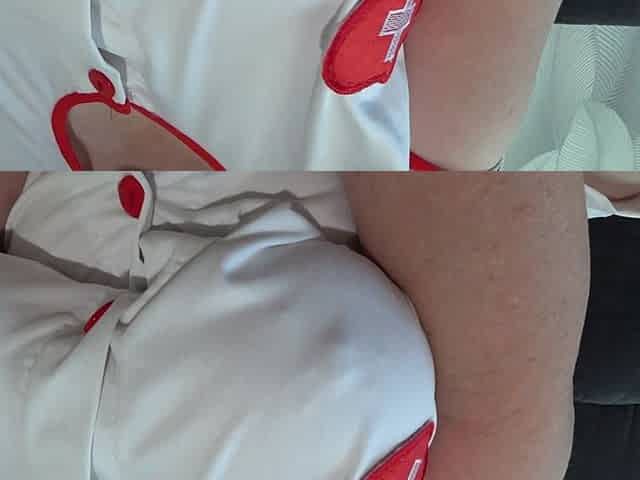 Gorgeous Big Boobs of a Nurse in Front of My Eyes Close-up. Old MILF Saggy Tits.