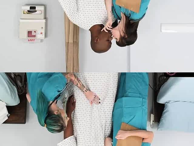 The Busty White And Ebony Nurses Visit Their Patient With A Raunchy Threesome In Mind