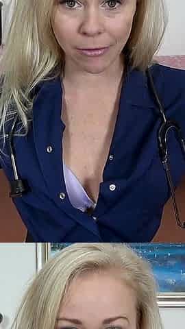 Busty blonde squirts when nurse comes in