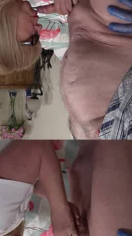 Gorgeous blonde nurse gives a prostate massage, strokes cock and finishes with a cumshot