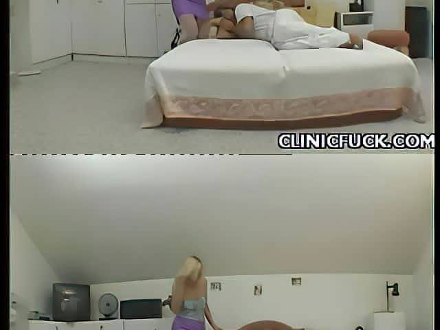 Nasty nurse gets on the table to toy and finger her ass with an enema