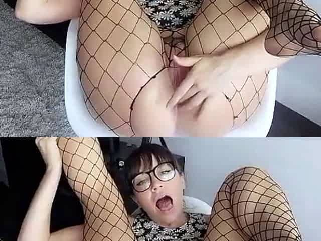 BEAUTY IN NYLONS JERKS OFF HER VAGINA, BRINGS HERSELF TO CLIMAX AND CUMS