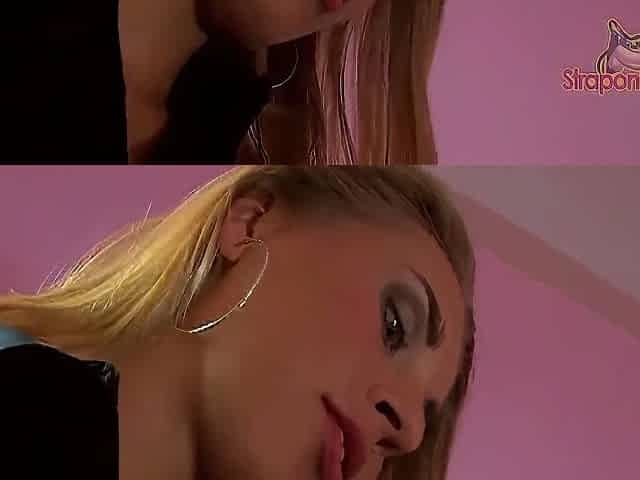 Pigtailed Blonde Chick Is Sucking A Huge Fuck Rod And Rubbing Her Pussy While Getting Fucked