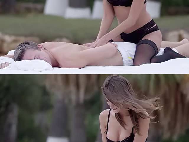 Pleasing brunette hair in ebony nylons, Silvie craves to take her lover’s greasy schlong, whilst outdoors