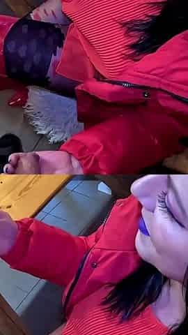 Cigar Blowjob & Ripped Pantyhose - Pussy Massage & Cum on My Downjacket