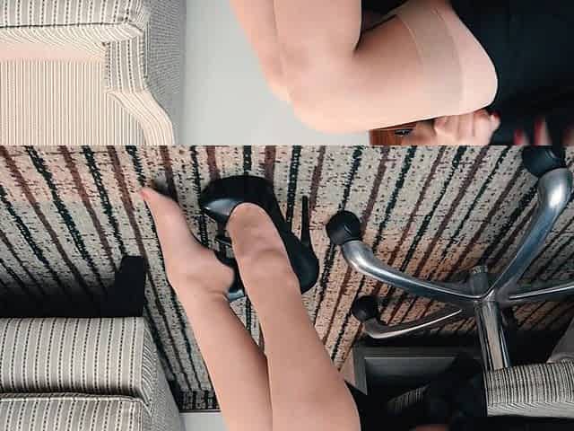 serious business woman in hawt nylons gets cum on her feet