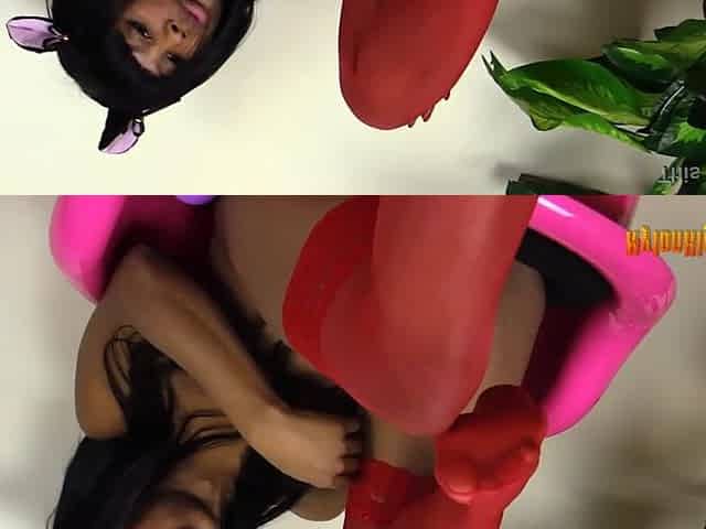 Screwing My Large Twat With a Giant BBC Sex toy in White Nylons