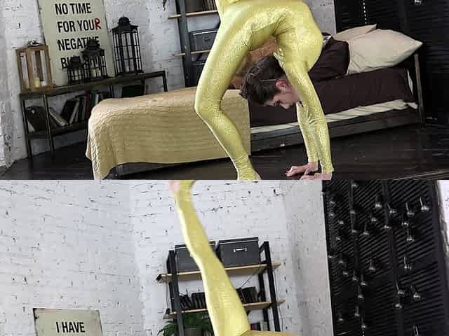Karina is a cute and fit teenager girl with outstanding breasts and lengthy feet