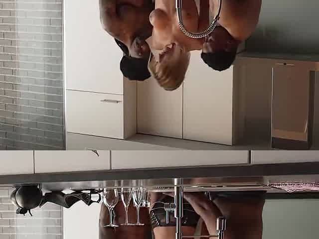 Blonde Jeanette wearing black lingerie riding her hubby's dick