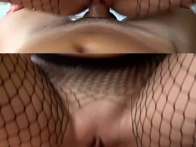 Screw Thai Oriental woman wearing revealing nylons, groans loudly in joy as cum over her body.