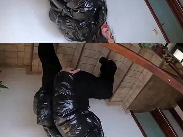 Milfycalla - Shiny Downjacket, Jeans & Leotard Stairway Sex Uncut Cum On Clothes