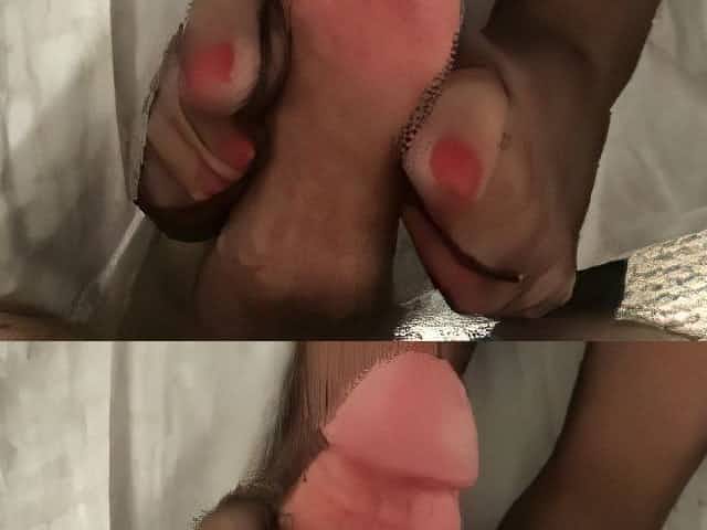 Liz Rainbow gives a footjob with her five toes pantyhose