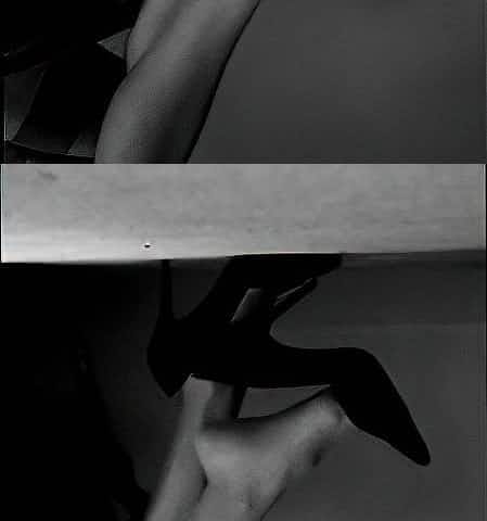 Sexy Feet with red Toenails in black Nylon & sexy High Heels