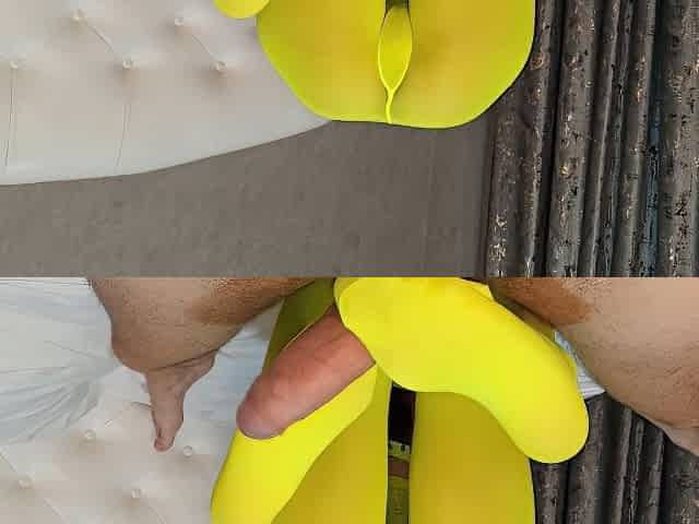 Cutie girl in yellow neylon pantyhose gave a great footjob!