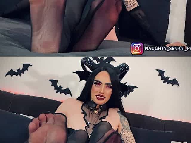 SUCCUBUS GOTH GIRL - Foot Fetish Halloween Special - Nylon Feet Tease, Footjob, Ahegao, Cosplay, UwU