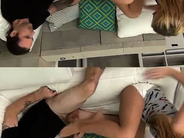 Fishnets footjob from stepsister