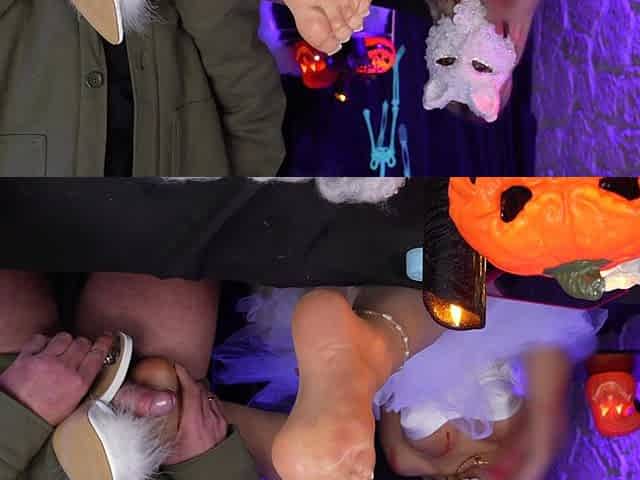 Xxl Halloween Footjob & Heeljob in Ripped Nylons - Foot Worship with White Toes