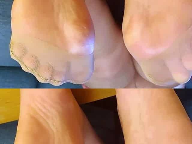 Shows nylon feet on camera in nylons