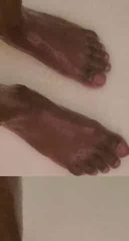 AMATEUR FOOTJOB IN EBONY NYLONS - CUM ON NYLON FEET