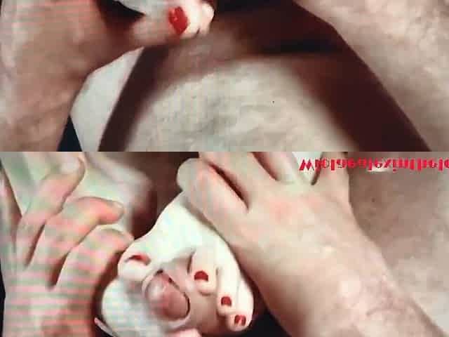 Nylon sideways footjob sexy toes wrap around his cock huge cumshot with cock ring