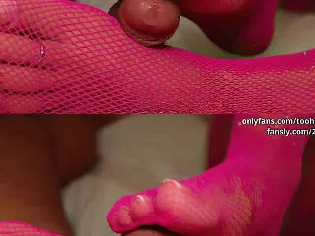 Footjob in Black Nylon Fishnet Ankle Socks From Hot Girl