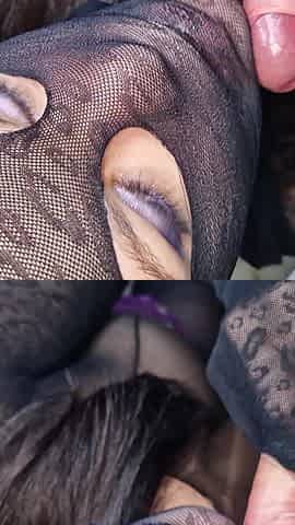 No.241021[Ebony fishnet open-toe nylons footjob orgasm. ] The movie scene is 22 minutes lengthy.