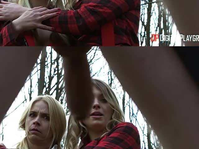 Two busty nymphos stumble upon Danny D's huge cock in the woods